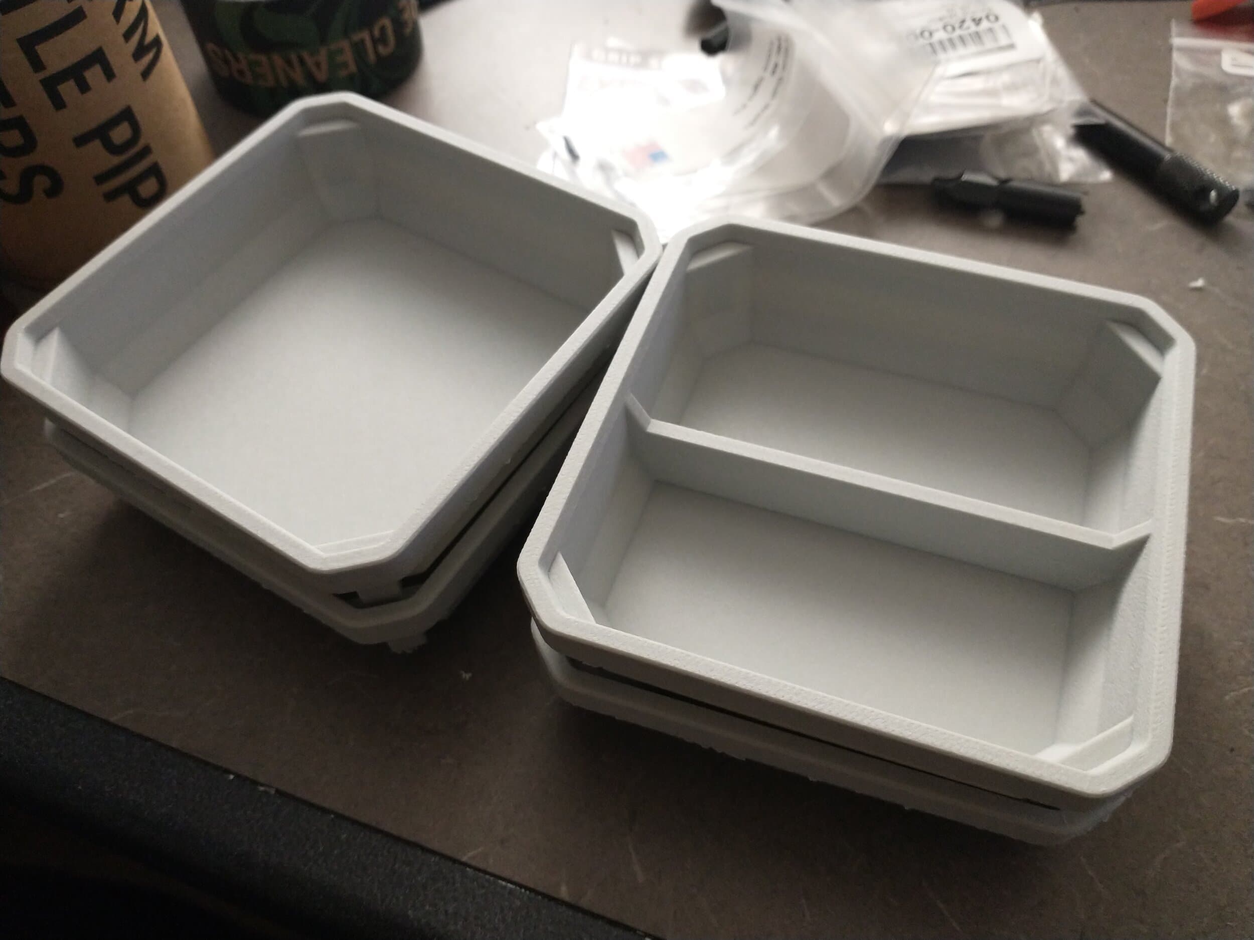 Open ↗Can't speak to that organizer system but regarding 3D printing and organizing shit, I whipped up some half height bins for the Milwaukee Packout system. Even with the thinnest containers, the internal bins are too large for organizing and storing quantities of smaller firearm parts (grip screws, etc). Three variants.