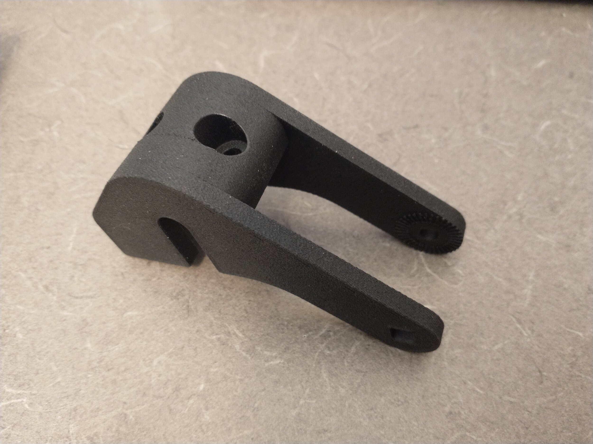 Open ↗After using the new mirror for a bit, decided to adjust the base position with a longer mount. Printed this one in ASA carbon fiber, first time with this filament. Bonded with acetone.