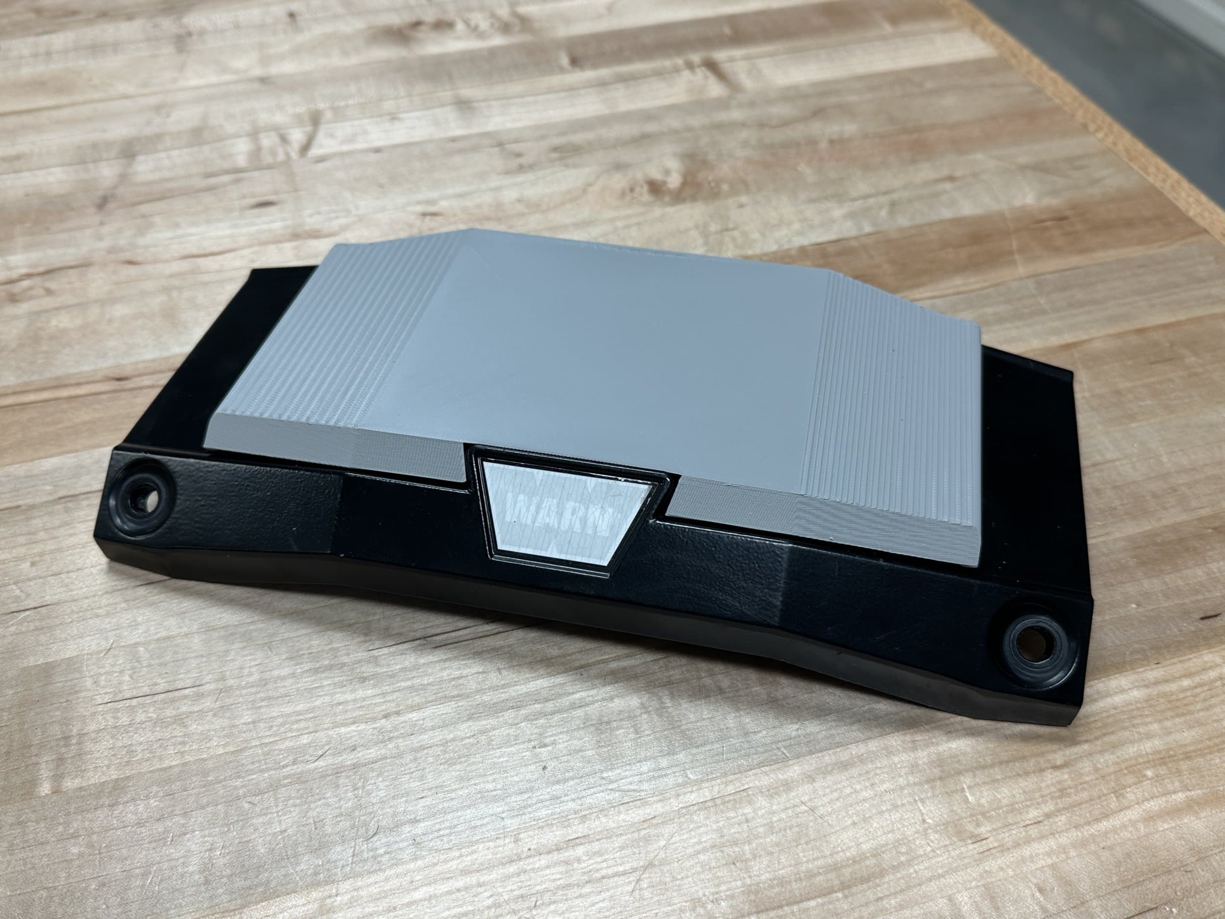 He's the project I referenced above. I run a remote solenoid/contactor in my Warn Zeon, and relocating it leaves the top of the winch looking a bit unfinished, and exposes more of the line to UV: A cap would help keep the sun off the top of the rope, and also clean up the look just a bit. It's actually a fairly challenging project as there are several complex angles on this thing, and a good way to improve my Fusion 360 skills. Here's the design... ...and the print with PLA. My intent is to source some Black ASA or ASA-CF for the final print: I've tried printing this thing in several different orientations, and with different support approaches. This was printed flat, bottom down, with grid supports. Any suggestions on how I can improve the striations on the top?